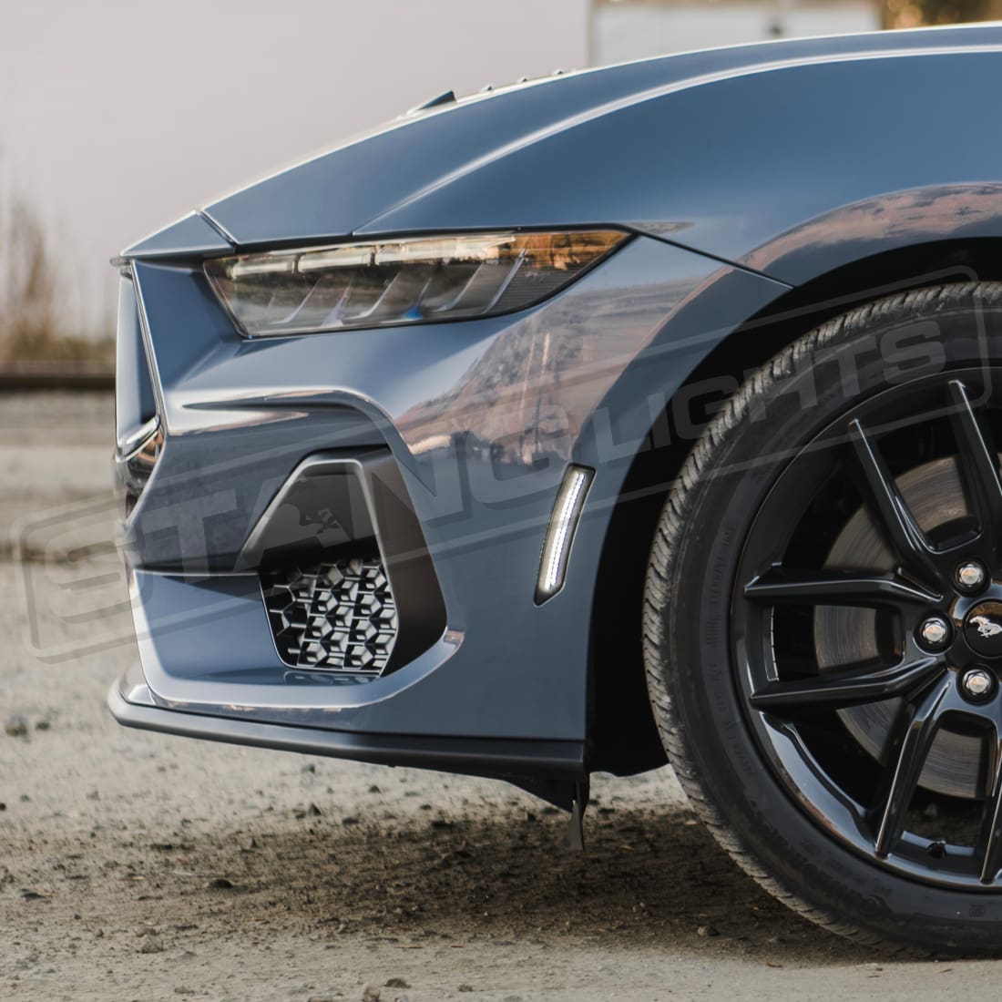 Give your S650 the lighting it deserves. These Dynamic Smoked LED Sidemarkers replace the dull factory lenses with a full-length LED strip and a sleek smoked housing that matches the aggressive lines of the new Mustang. The result is a clean, high-end appearance during the day and a bright, uniform glow at night.